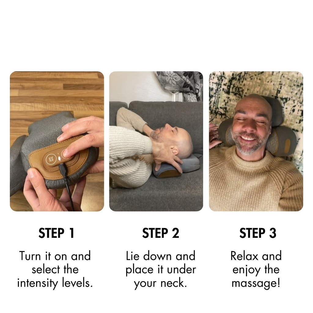 After heat loosens your muscles, Postura Pillow™ Vibration Therapy cycles through 4 targeted rhythms. Each designed to loosen, release, and fully relax your neck and nervous system step by step.
